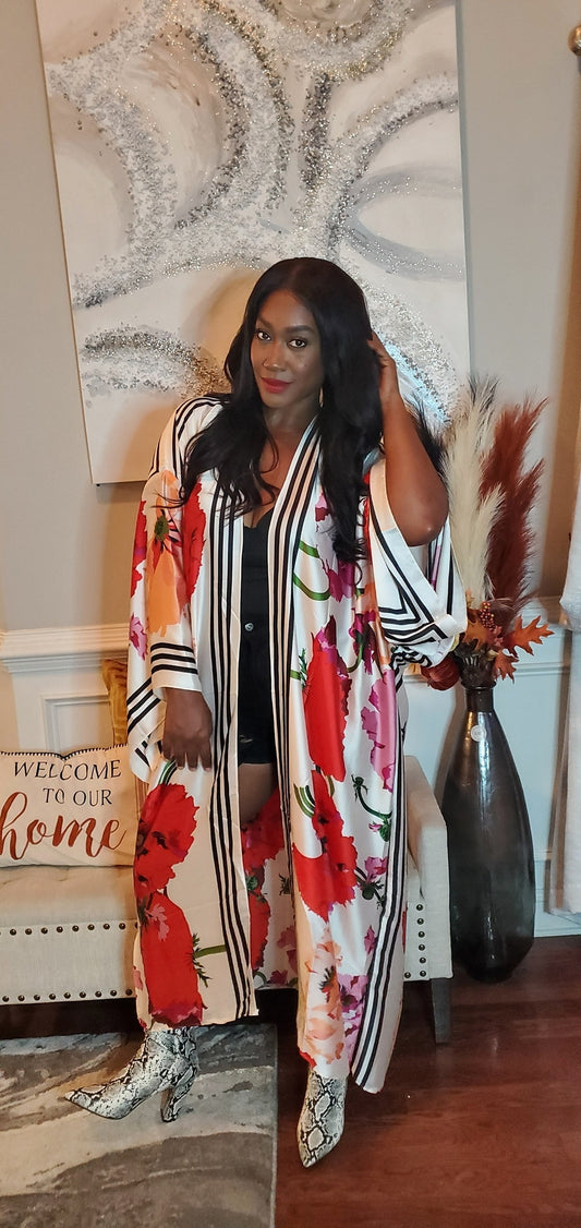 Our New Safari Printed Duster is a a Conversation Piece~ Wear With Shorts ( as pictured) or Distressed Jeans and Heels.